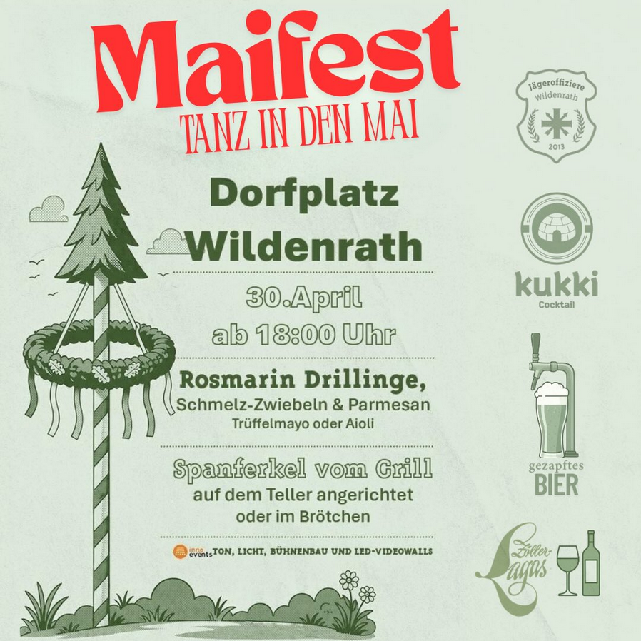 Am 30. April ist es wieder soweit! Kommt vorbei und feiert mit uns auf dem Dorfplatz Wildenrath 🌿