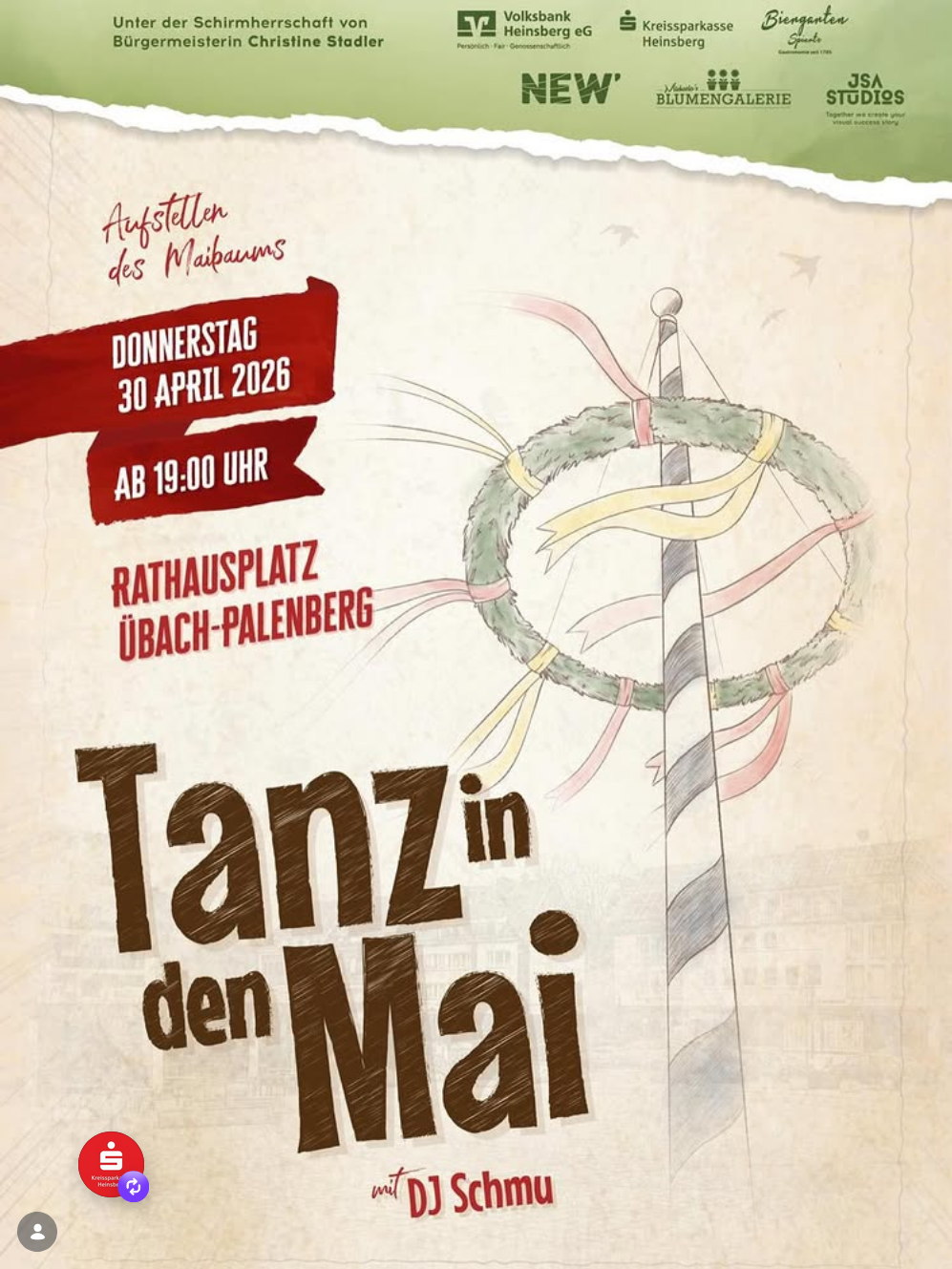 Am 30. April 2026 laden wir ab 19:00 Uhr herzlich auf den Rathausplatz ein.