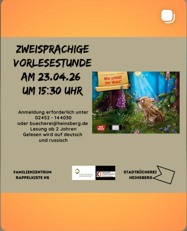 Anmeldung erforderlich, Lesung ab 2 Jahren auf deutsch und russisch.
